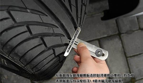 如果你经常驾车行驶在摩擦力低的湿滑路面上,最好能保证胎面花纹厚度是上述数值的两倍。可以购买一个计量器来测量胎面花纹的厚度,也可以用一枚一元硬币,顺着国徽顶端方向插入胎面沟壑中,因为硬币边缘到国徽顶端的距离在1到2毫米之间,所以如果这时还可以看到整个国徽标志,说明胎面花纹厚度已经不足。