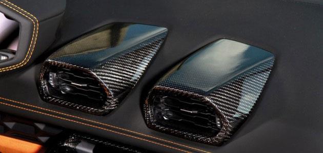 内装部分则有碳纤维门把、中控台饰板、门槛饰板,甚至连空调出风口都换上了以碳纤维材质製作的配件。方向盘以及换档拨片也都能够换装碳纤维部品来进一步的让全车碳纤维化。