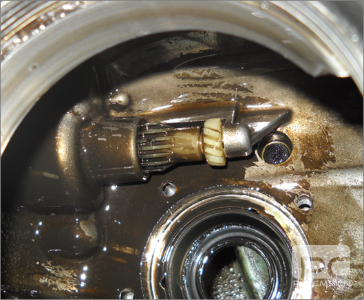 移,使定位凸舌脱离壳体槽,导致被动齿轮自转了,造成此故障。