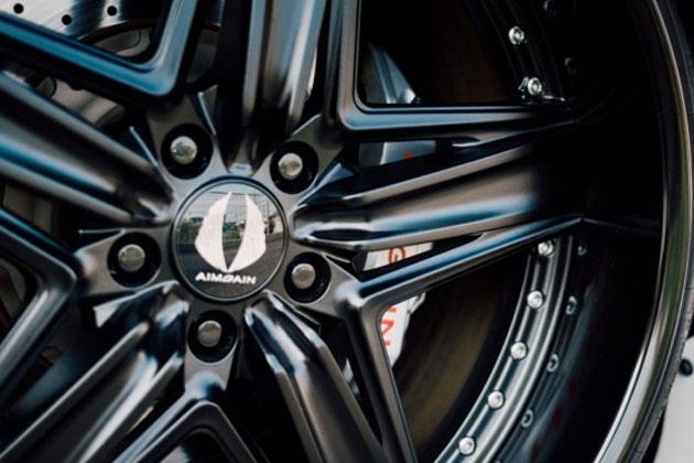 21寸三片式锻造轮毂,粗壮的黑色轮辐,21×10.5 + 9、21×12 + 16前后参数,Nitto Invos 255/30 ,295/25轮胎,隐藏在这样的轮子下的是是一套强化刹车套件。