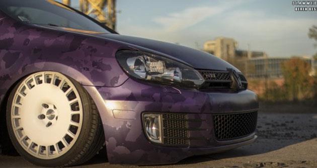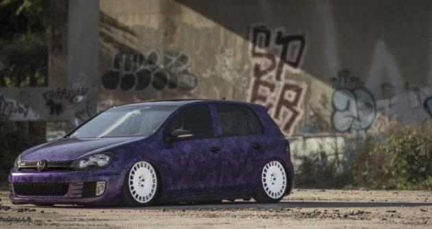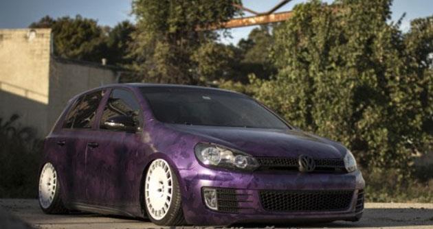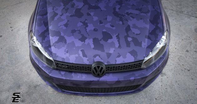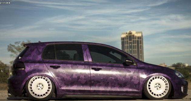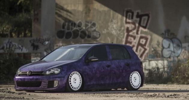 紫色迷彩,浪漫到闷骚的感觉,车标中网以及车窗的黑色也比较和谐,最吸引眼球估计就是白色的Rotiform 18英寸VCE系列轮毂(18x8.5)。Rotiform作为定制锻造轮毂的厂商来说,绝对是个后起之秀。2009年才注册的这家公司之所以很快在改装界蹿红的很大原因是受到大众车型改装爱好者的追捧。