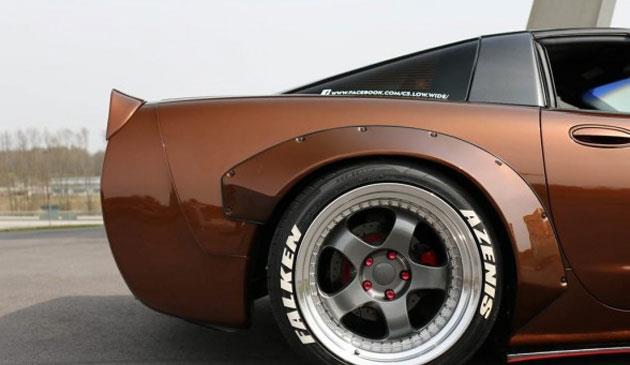 车身宽体是车主由Rocket Bunny v2 S13宽体身上获得灵感并将这套来自日本的火箭兔换装在克尔维特C5身上