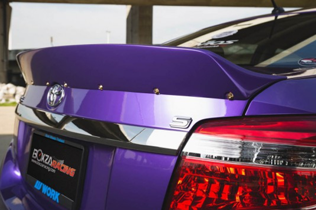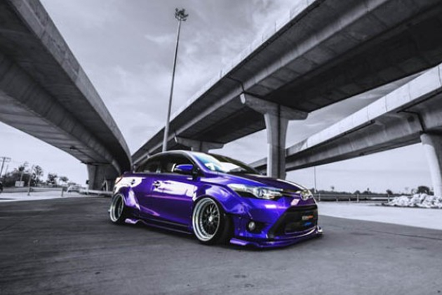 最近几年,宽体好像病毒一样在全世界传播,这辆紫色威驰在宽体的修饰下暴露了其膨胀的线条。谁说买菜车不能张狂?