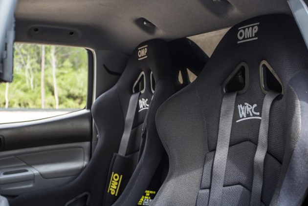 这辆丰田Tacoma加装了一个330加仑(约1250升)的增程油箱、定制防滚架、Garmin导航系统、Webasto发动机加热系统和绞盘。此外,还换装了OMP WRC赛车座椅、44英寸Mickey Thompson雪地轮胎,以及定制的差速器。