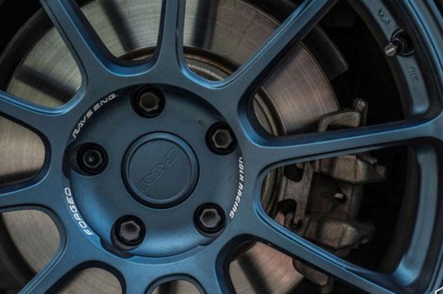 来自RAYS的VOLK RACING ZE40ZE40轮毂,磨砂蓝的外观足以让人惊艳了,搭配Nitto耐特通轮胎,数前245/30;后275/30轮胎。来自KW的DDC避震,不单可以利用Iphone来进行阻尼调教,它还能够利用KW原厂配置的按钮进行三段固定的模式切换,而且它还能够在原车的行车电脑中显示。